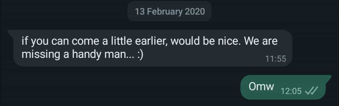 After I was hired, Michelle told me to come to the venue a few weeks later (which was still closed due to covid). She said to me "Your manager will be there, our head of Operations, our CTO and another Operation Specialist (Jeroen, Max, Gilles and Eryk).